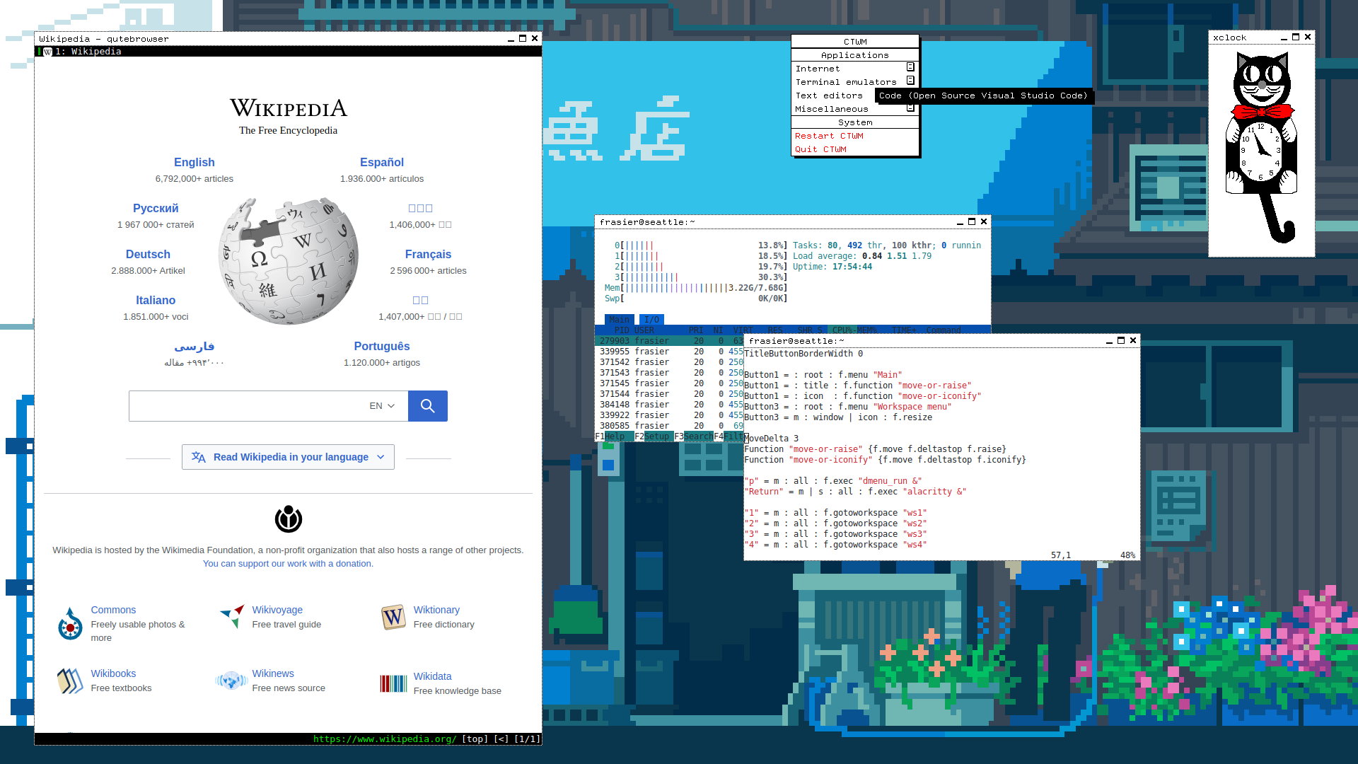 First, TWM doesn't support virtual desktops; for that, we'll need to